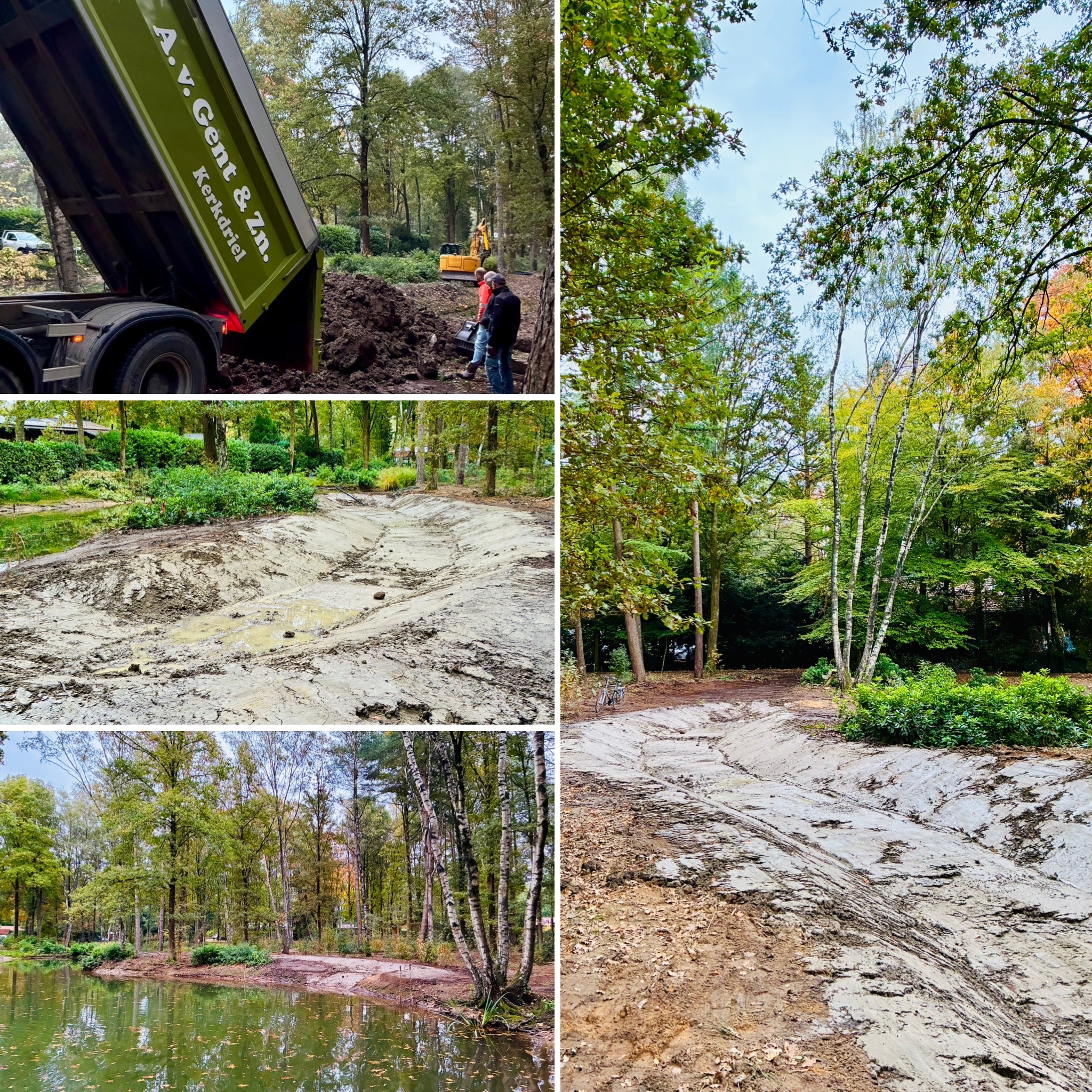 Woensdag 15 oktober is er hard gewerkt bij de vijver door de ploeg van Adrie van de Brand.